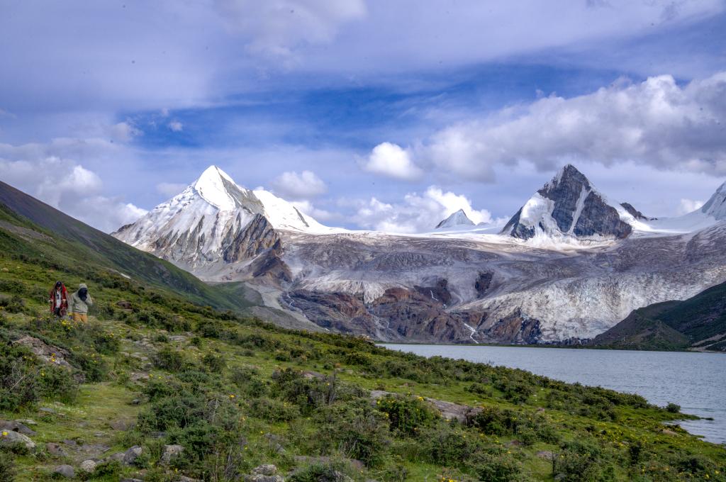 圖為游人在位于西藏那曲市比如縣境內的薩普雪山下徒步。新華社記者 姜帆 攝