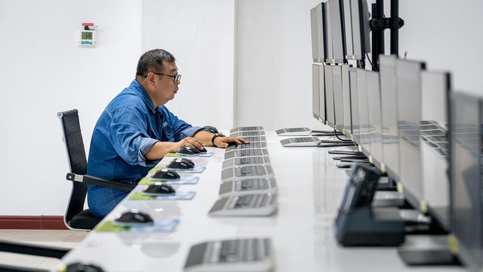 在吉林省通榆縣什花道風電場控制中心,工作人員正查看風機運轉數據。新華社記者 唐成卓 攝
