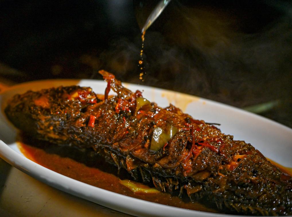 這是馬秀花制作的漢族風味的燉魚(9月17日攝)。