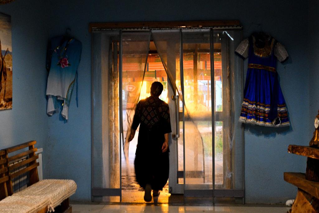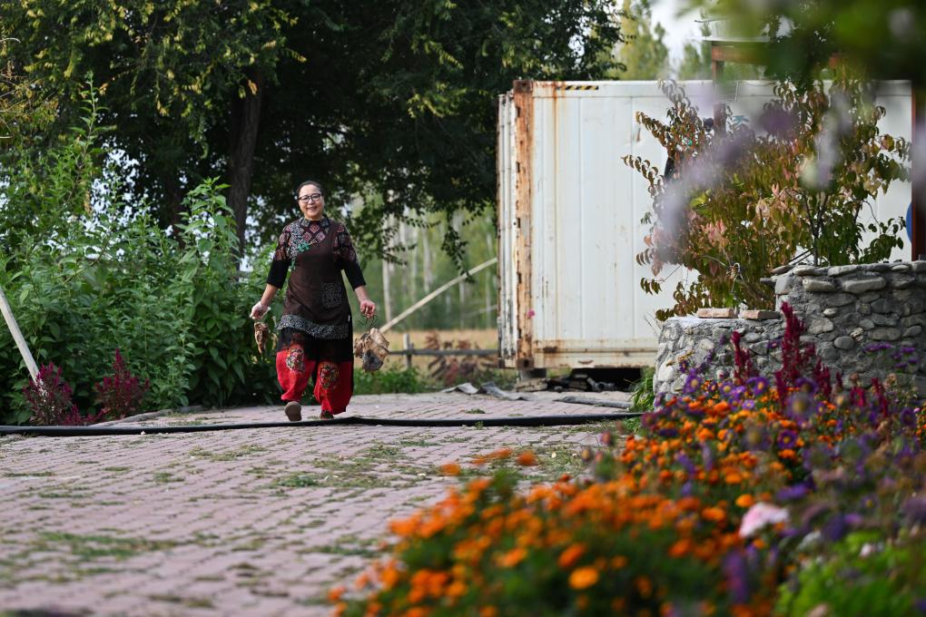 9月17日,哈薩克族客人庫爾加娜在院中跳舞。