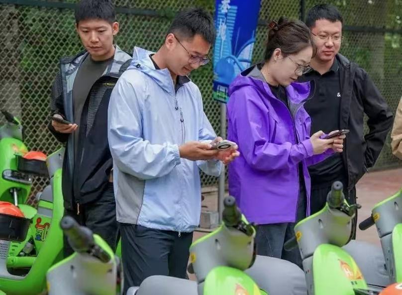 在內蒙古自治區鄂爾多斯市康巴什街頭,市民掃碼體驗“氫個蛋”共享單車。(受訪者供圖)