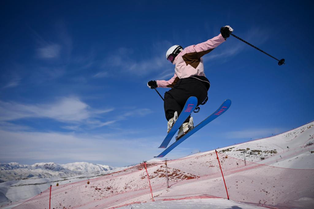 2025年農歷除夕當天,雪友在滑雪公園飛越跳臺(1月28日攝)。新華社記者 胡虎虎 攝