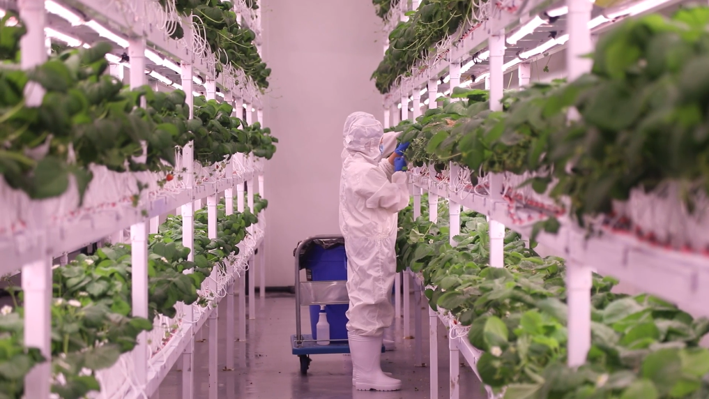 據了解,該智慧工廠由中國農業科學院都市農業研究所提供核心技術支撐,成都興蓉西集團投資建設,四川中農億享農業科技有限公司負責運營維護,生產車間采用10萬級潔凈標準,種植環節應用先進的“光配方”的立體種植技術,可對光照、溫度、水分、肥料、二氧化碳濃度進行全流程精準調控,單位面積產量達到傳統地栽模式的30至40倍,每天可產400斤草莓。