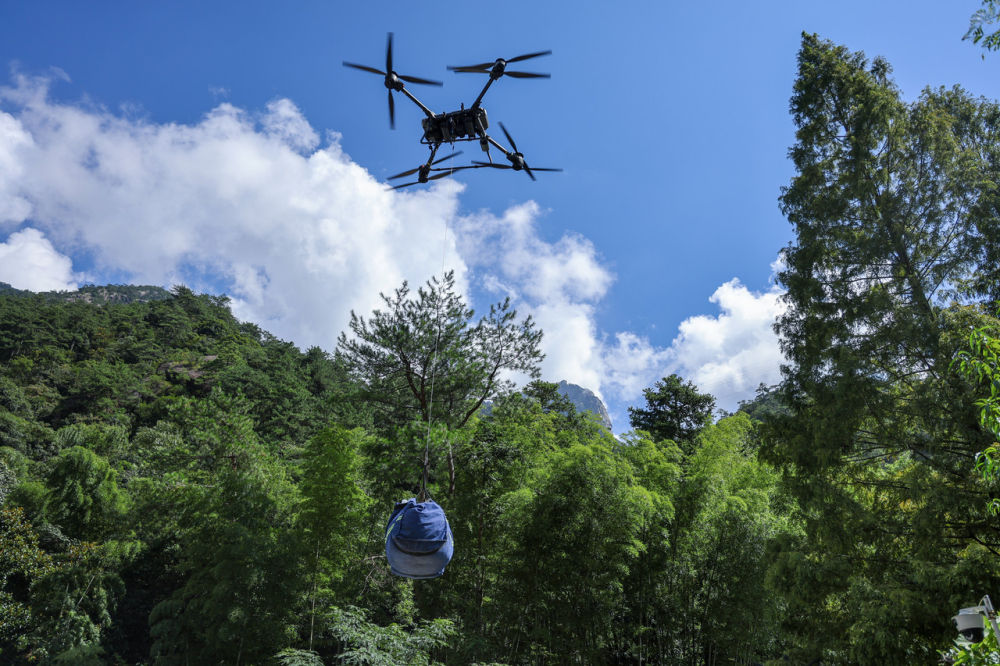 無人機正在黃山運送物資。(黃山市委宣傳部供圖)