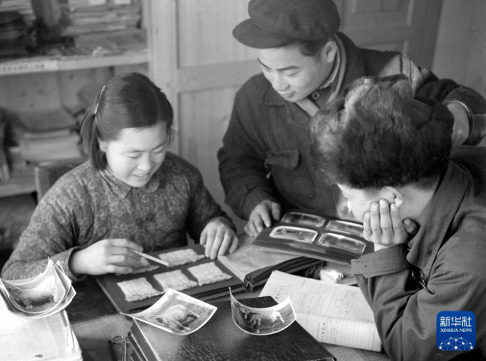 在鞏乃斯種羊場,工作人員正在整理種羊檔案資料,為了掌握和研究種羊的生長、繁殖規律,這里建立了一套完整的種羊檔案制度。(1961年12月18日發)