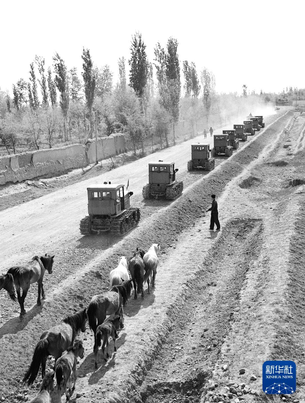 1964年,塔城拖拉機站嶄新的“東方紅”牌拖拉機正開向田野。