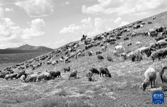 第二天清晨,被羊叫聲喚醒,我跑出帳篷,只看到漫山遍野的羊群,像棉田里一朵朵綻放的棉花。我這個不久前才從北京來的人哪里見過這樣的場面,趕緊取出相機,到處找角度拍照。后來其中一張名為《天山放牧》的照片被推薦參加了“荷賽”(世界新聞攝影比賽),成為我國較早入圍“荷賽”展覽的攝影作品之一。