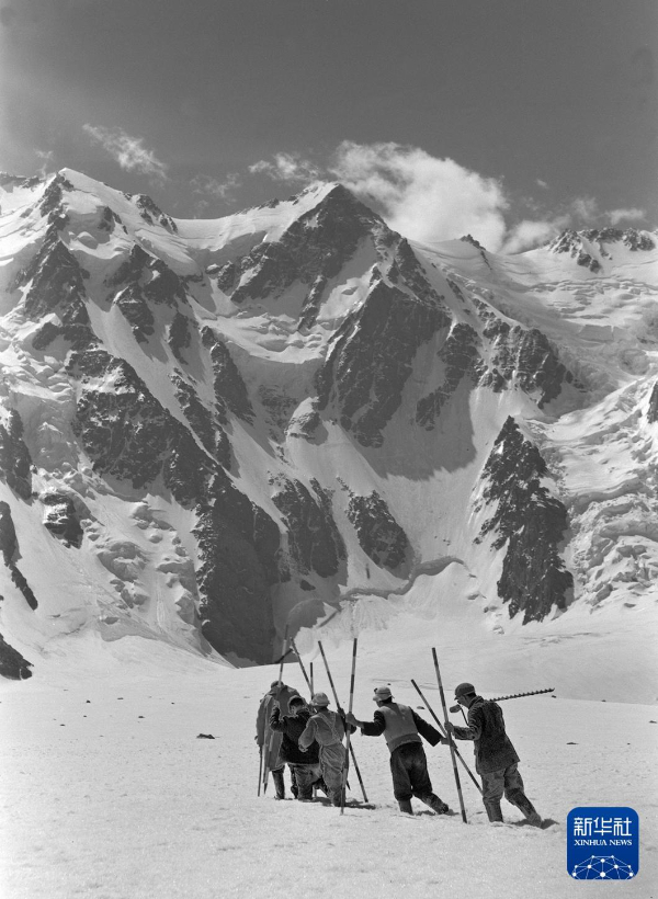 中國科學院新疆分院冰雪利用研究隊和有關單位的科學工作者在天山博格達峰北麓開發冰雪資源。