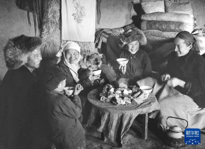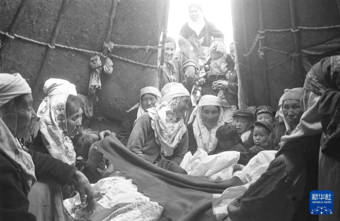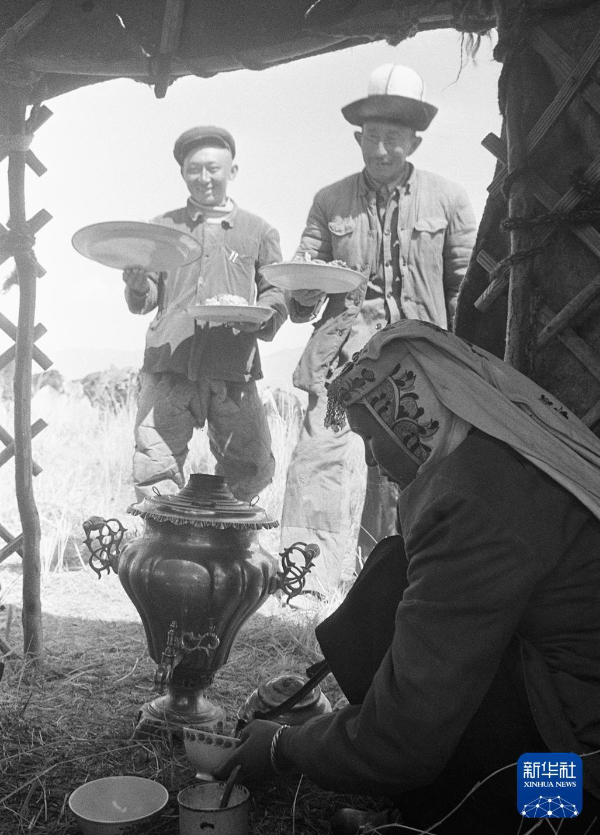 1964年,在新疆鞏乃斯河川,草原上來了遠方的客人,好客的牧民熱情招待。