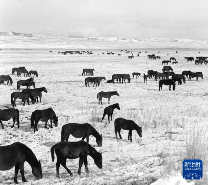 昭蘇種馬場上的大批伊犁馬。(1962年2月15日發)