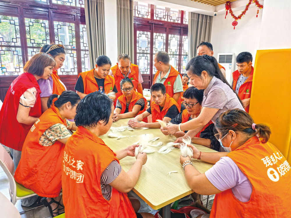范玲英還帶領團隊開展“上門授藝”服務,60余名殘障人士足不出戶就能掌握制筆技藝,在照顧家庭的同時也能增加收入,重拾生活的尊嚴。2024年,孵化中心榮獲國家級“美麗工坊”稱號,成為照亮殘疾女性前行路上的一盞明燈。截至目前,共舉辦培訓100余場次,培訓殘疾人1000余人,其中殘疾婦女430余人。