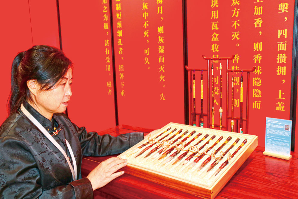 范玲英不斷開發新產品,十二生肖系列、故宮文創聯名系列等,讓古老的湖筆煥發新生。2024年,她帶著秦峰湖筆參加中法建交60周年文創作品展,向世界展現了中國殘疾匠人的非凡技藝。今年4月,她還帶著兩位殘疾女工參加了在北京故宮文創融合館舉行的殘疾人手工藝品展。