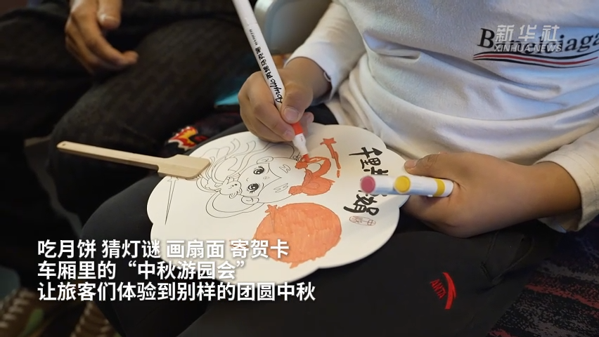 吃月餅、猜燈謎、畫扇面、寄賀卡……車廂里的“中秋游園會”,讓單調的旅途變得格外溫暖,讓旅客們體驗到別樣的團圓中秋。