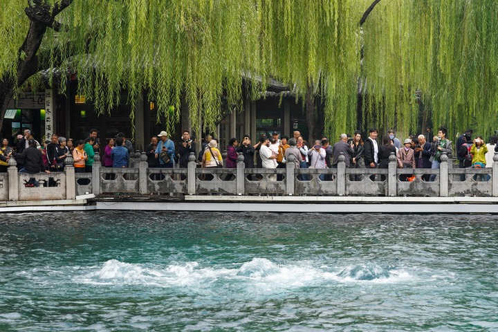 濟南市群泉奔涌,吸引游客前來觀賞。新華社記者 朱崢 攝