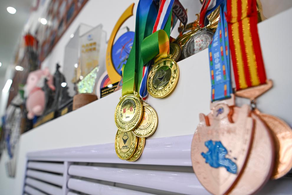 這是吳俊亮曾經參賽獲得的部分獎牌與獎杯(10月25日攝)。新華社記者 胡虎虎 攝