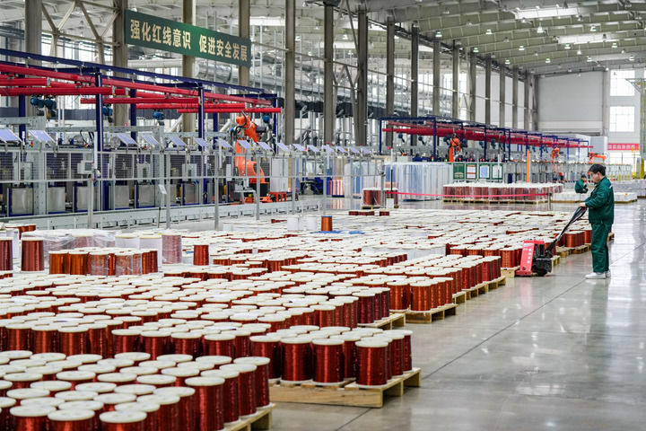 2025年2月6日,工人在重慶萬州經開區金龍銅管生產車間作業。(黃建樺 攝)