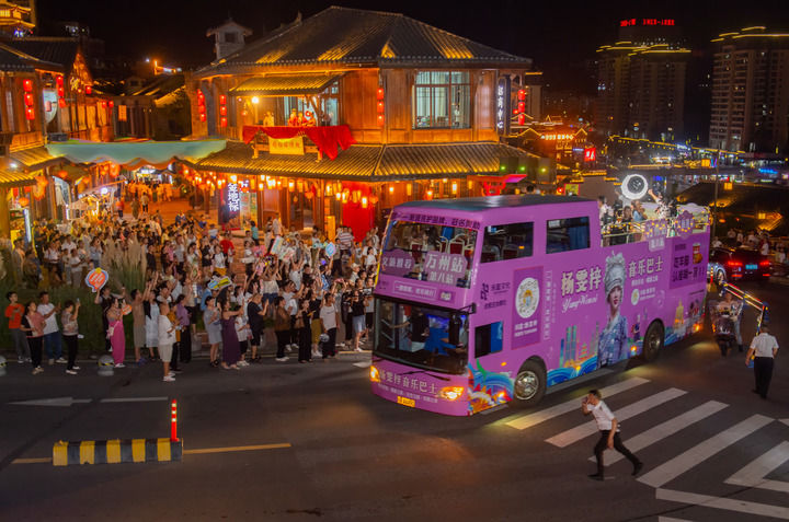 2025年9月13日,網紅流動直播巴士開進重慶萬州天生城文旅街區,通過網絡展現萬州城市活力。(冉孟軍 攝)
