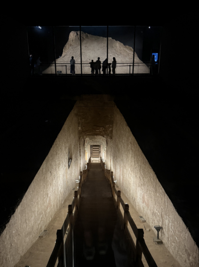 毗鄰太原南站的太原北齊壁畫博物館,依托徐顯秀墓原址而建,開館不到兩年,就成為年輕游客到太原后的首選“打卡地”。秋日微雨,不少游客手提行李箱來到這里,看“有趣的”歷史——立于墓葬遺址之上,透過玻璃可見墓道、過洞、甬道,更能借數字技術“走入”壁畫,感受“人在畫中游”的奇妙體驗。
