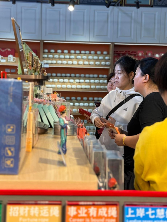 游客在晉祠博物館挑選文創產品。新華網 王夢佳 攝