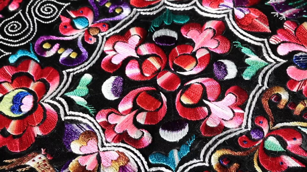 畢志輝8歲跟隨奶奶學刺繡,掌握鏤空繡、挑花等多種針法。他注重創新,采用祖傳“植物土法染布”與定制繡線,作品兼具傳統與靈動。年過五旬的他打造傳習館、外出授課,致力于將彝族撒尼刺繡這一國家級非遺技藝傳承下去。