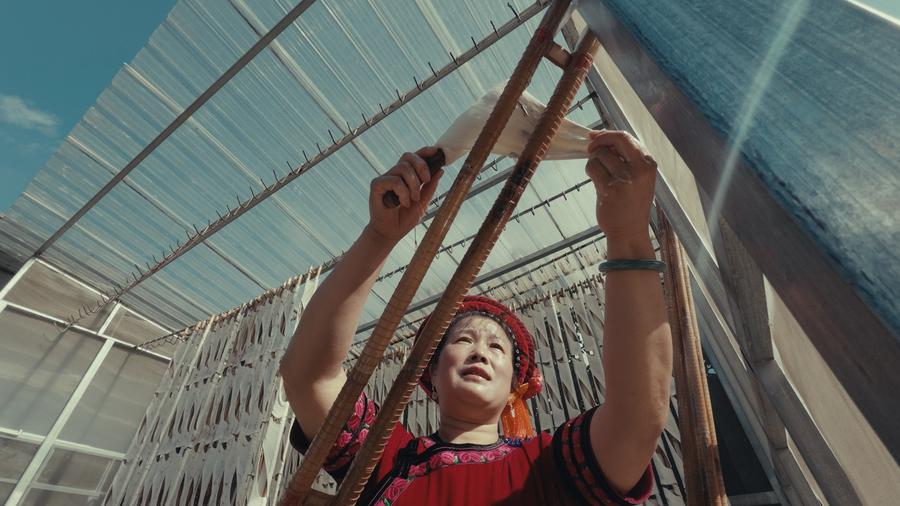 11月20日,楊瓊正在忙著制作乳扇。新華社發(羅曉川攝)