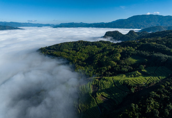 在云南省臨滄市滄源佤族自治縣拍攝的云海茶園。新華社記者江文耀攝