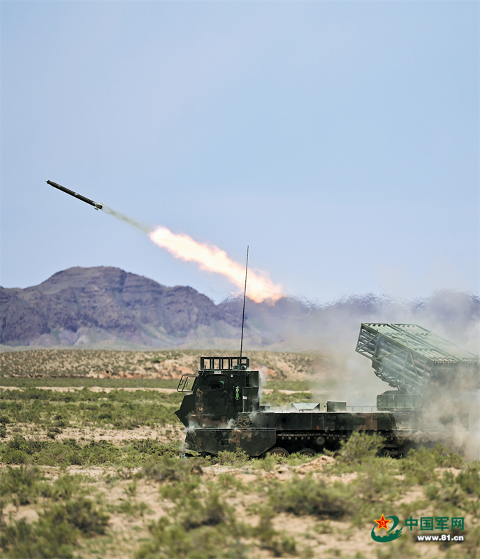 指揮車內,熒屏閃爍,數據奔流,一道道指令通過指揮信息系統傳至各火力單元?!邦A備,放!”射擊指令傳來,火箭彈拖著烈焰破膛而出,直撲目標。