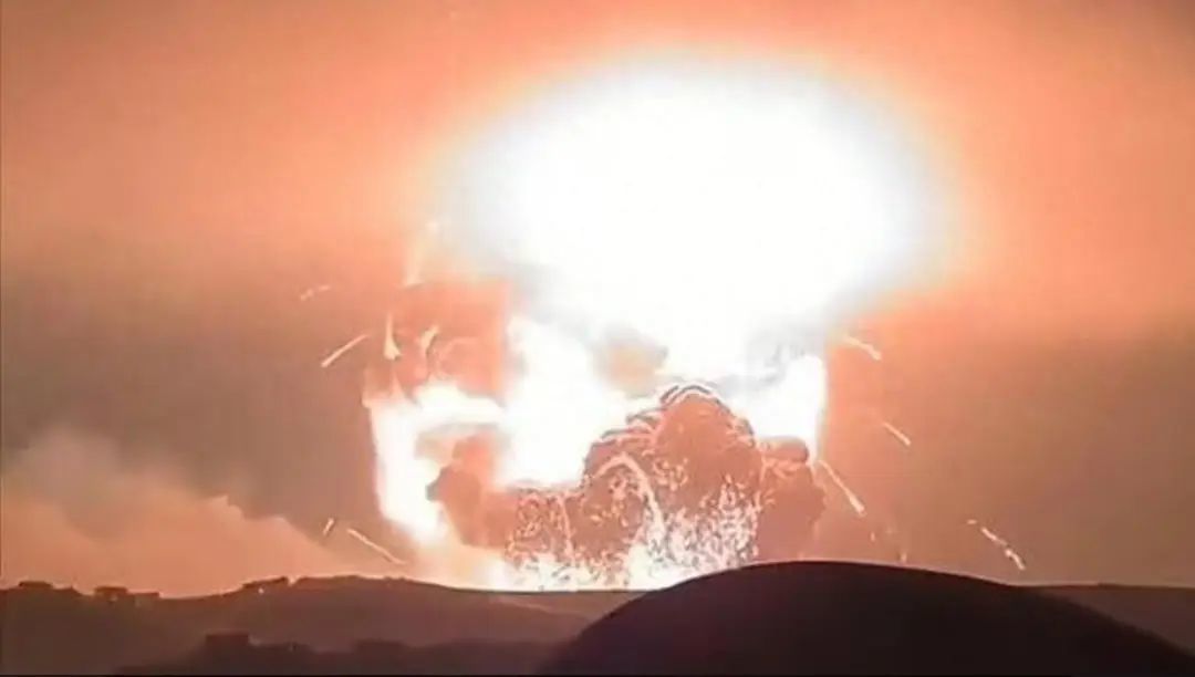 在社交媒體上傳播的現場視頻顯示,一個巨大火球照亮夜空,爆炸地點升起巨大的蘑菇云。