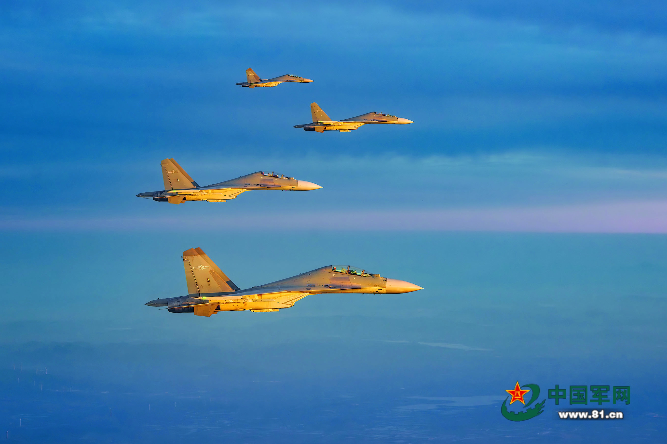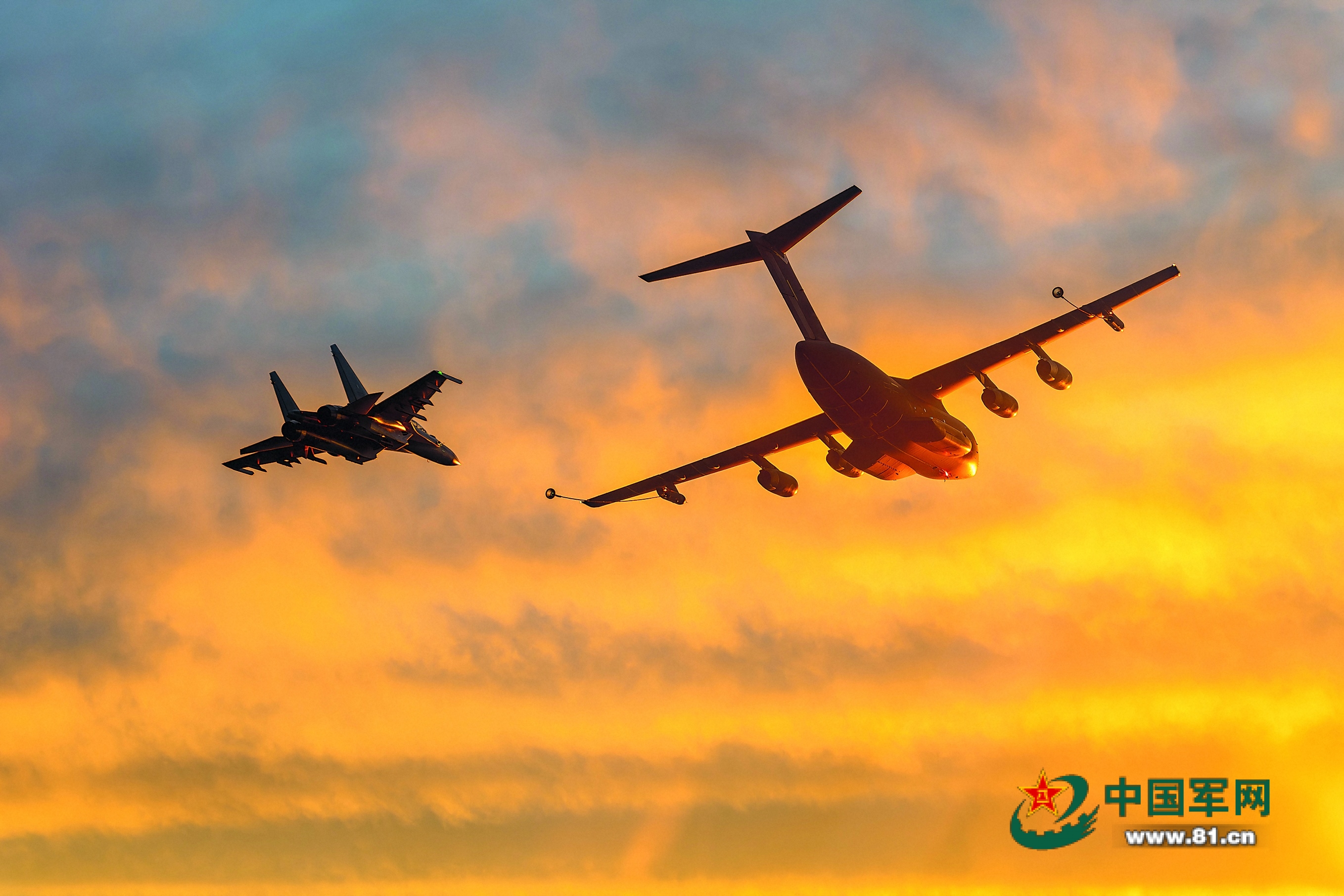 日落時分,戰機在夕陽映照下仿佛披上一層金色戰甲。編隊再次進行空中加油,隨后展開區域封控訓練……(鄭 均 張兆鵬 解放軍報特約記者 楊 盼 攝影報道)