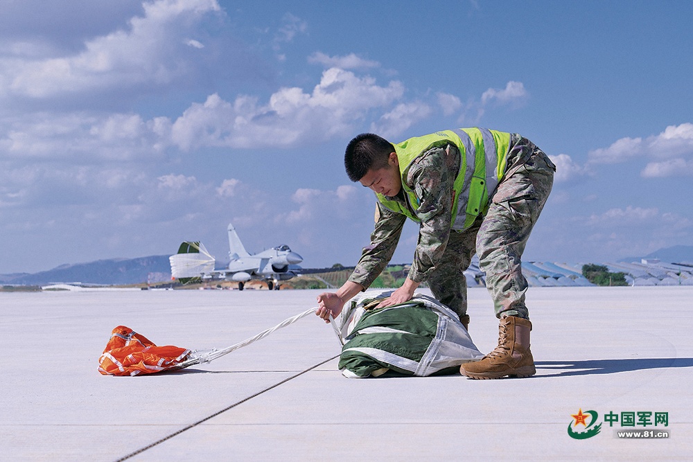 “傘具暴露越久風險越大,撿傘必須快、準、穩!”據介紹,阻力傘與戰機脫離后,救生裝具員需在十幾秒時間內將傘具拖離跑道,并且利落地對傘具完成初步折疊,慢一秒都可能耽誤后續戰機起降,甚至引發險情。
