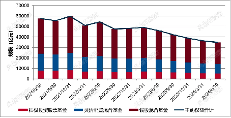 近三年主動權益基金(積極投資股票基金、偏股混合基金、靈活配置混合基金)規模(來源:天相投顧)