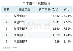 2024年二季度ETF規模統計(來源:Wind)