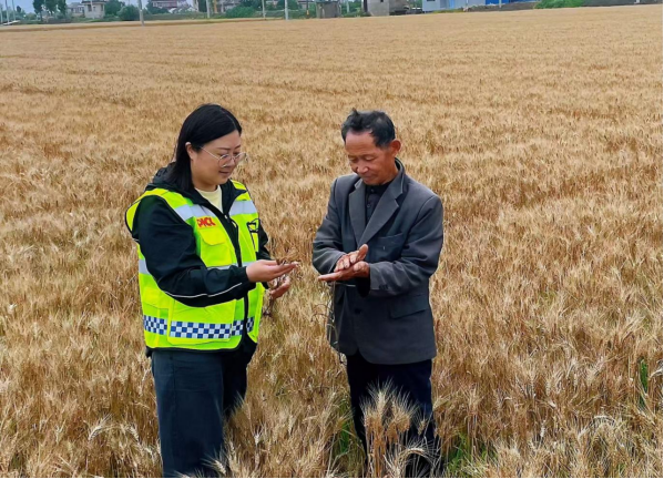 夏日的海安鄉村,麥田一望無垠。在海安白甸鎮周垛村的田邊,農險專員張慧慧正蹲下身,仔細查看倒伏的小麥?!靶?,端午節還麻煩你過來,辛苦了??!”農戶們的感謝樸實真誠,而作為土生土長的海安農村娃,張慧慧總是靦腆一笑。