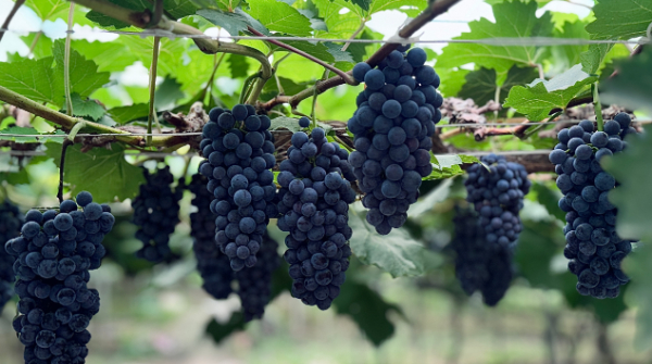 正值夏至時節,無錫江陰市璜土鎮的萬畝葡萄園內,藤架低垂,累累紫玉壓彎枝頭,萬畝葡萄園迎來豐收季。