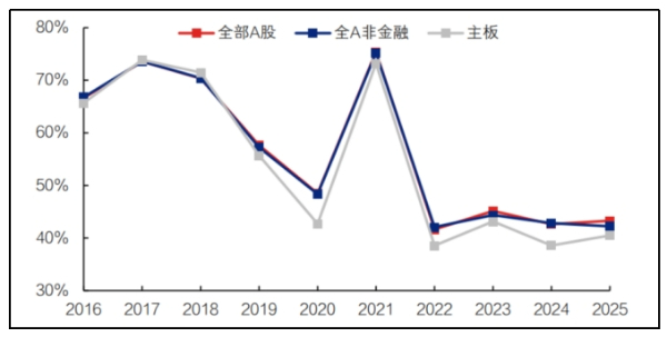 興業證券首席策略分析師張啟堯團隊將預告類型分為預喜、預憂兩類型,預喜率為預盈公司數量的占比。在已披露業績預告類型的上市公司中,共652家預喜、854家預憂;全部A股預喜率為43.29%,較2024年的42.64%有所回升。