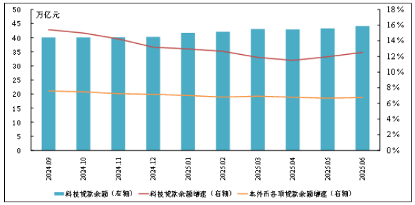 一是科技貸款保持較快增長。截至6月末,科技貸款余額達44.1萬億元,同比增長12.5%,較同期全部貸款增速高5.8個百分點。其中,增長最快的科技型中小企業貸款,今年以來保持在20%以上的增速。
