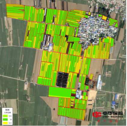 中華財險河北分公司承保地塊作物長勢監測圖。依托科技手段,精準掌控農情,科學指導農戶進行風險防控。
