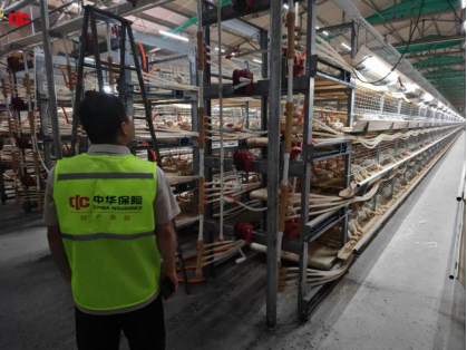 中華財險滄州中支工作人員在規?;B雞場內進行實地風險查勘。