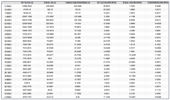 城(農)商行方面,資產規模實現穩步擴張,表現良好。其中,江蘇銀行總資產為4.79萬億元,增速達26.99%,兩項經營指標均位列城商行首位;北京銀行和寧波銀行分別以4.75萬億元、3.47萬億元規模位列其后,資產增速分別達20.33%、14.39%。