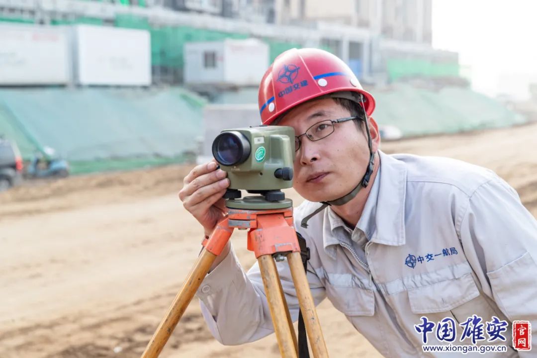 ▲史建昆在工地現場測量(2021年11月20日發)。中國雄安官網毛鶴然 攝