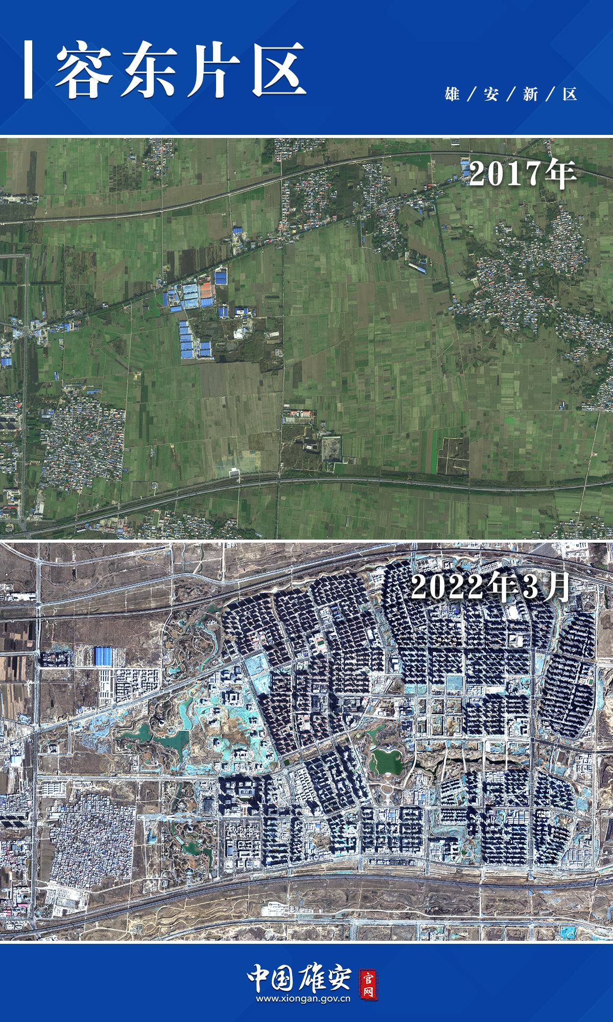 ▲2017年至2022年雄安新區容西片區變化圖。
