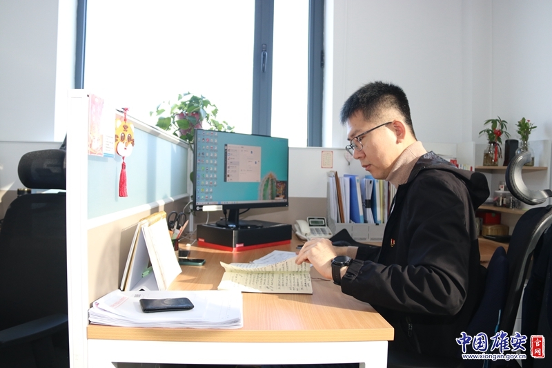 ▲圖為雄安新區應急管理局一級業務主辦、綜合組組長田雨正在整理會議資料(2022年2月23日發)。雄安新區應急管理局供圖