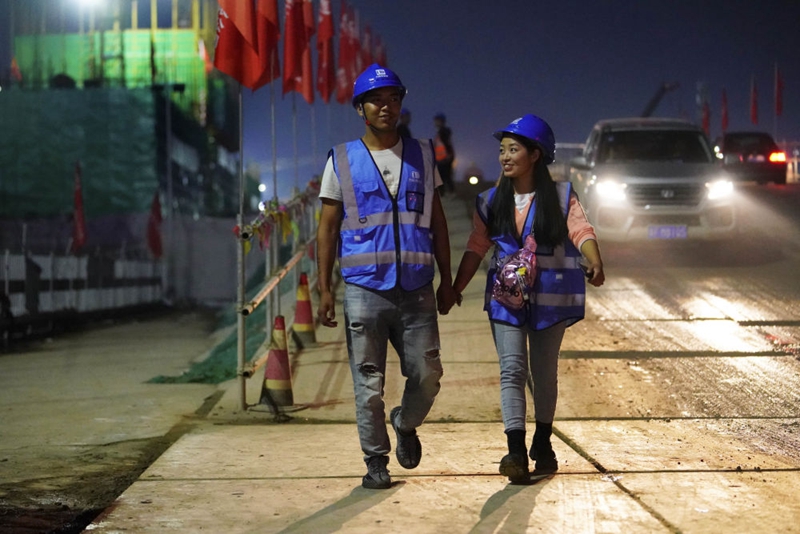▲工作中的楊郁青和宋利方(2022年1月12日發)。中建八局供圖