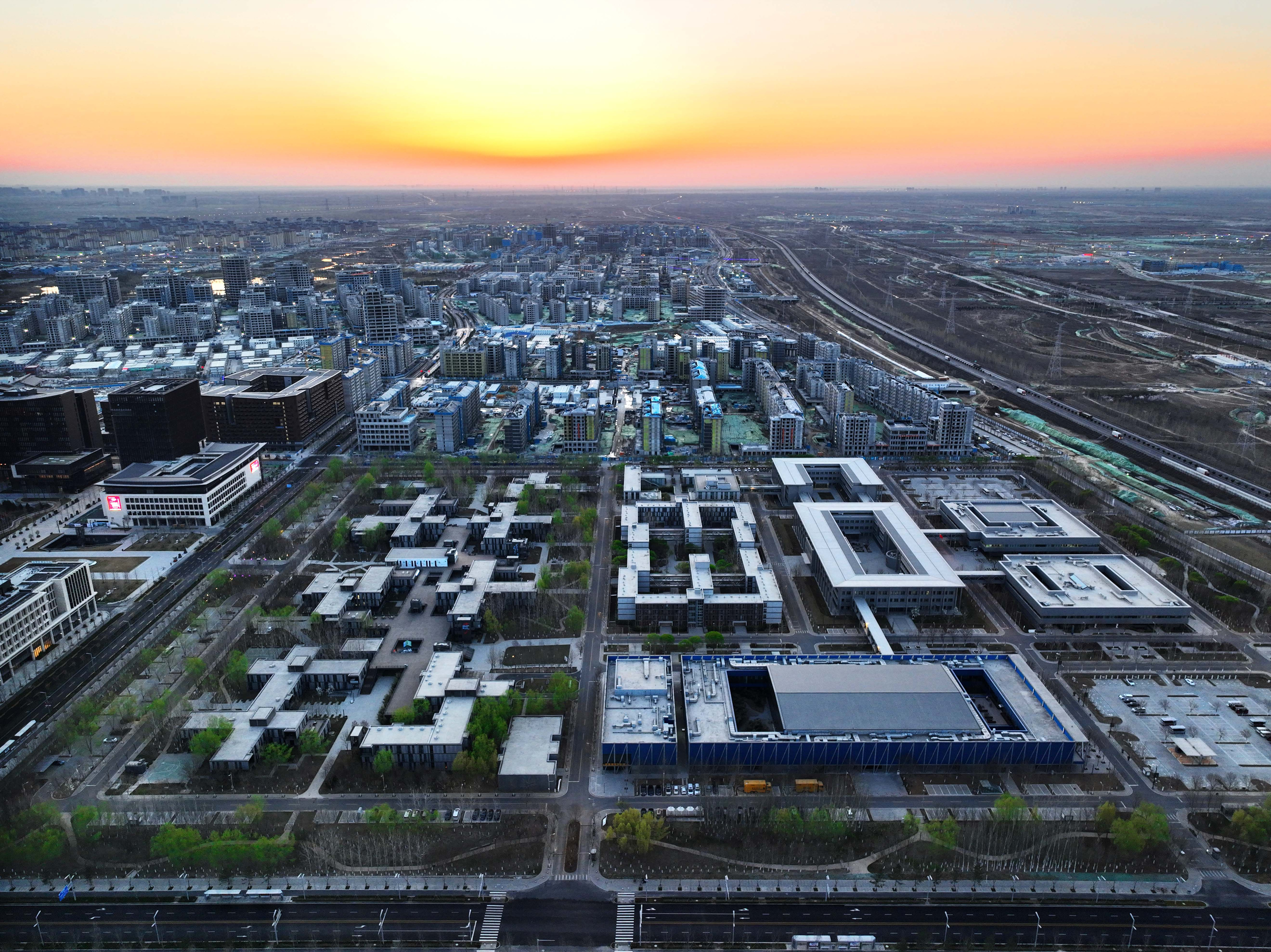 ▲2022年4月1日在雄安新區拍攝的日出(無人機照片)。新華社記者 邢廣利 攝