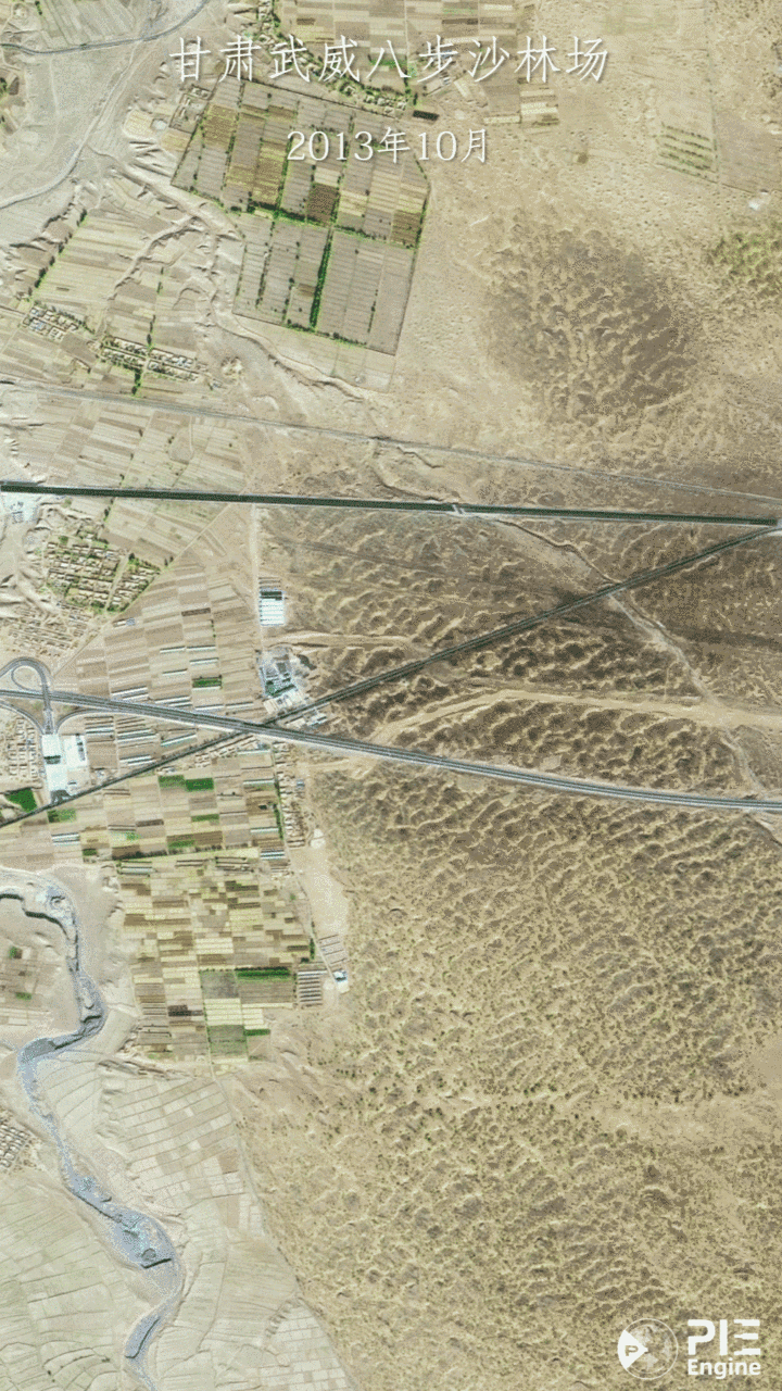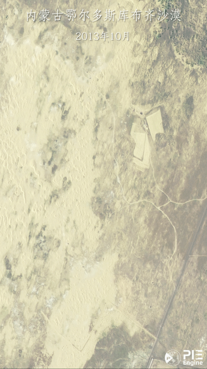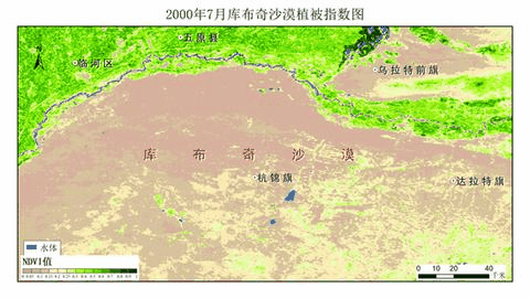 ▲庫布其沙漠2000年7月與2019年7月植被指數對比圖。來源:國家林業和草原局
