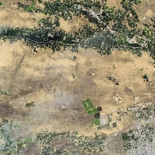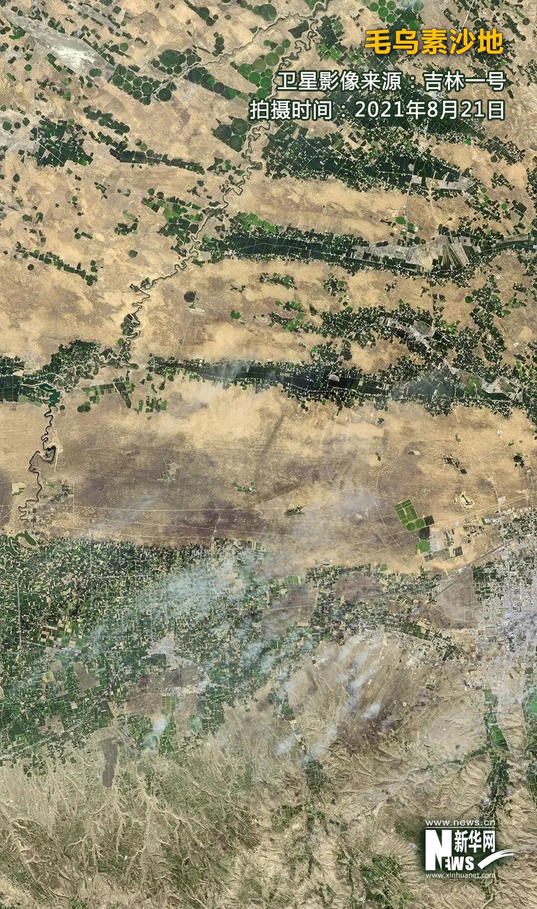 ▲衛星視角下的包蘭鐵路。圖片來源:新華社