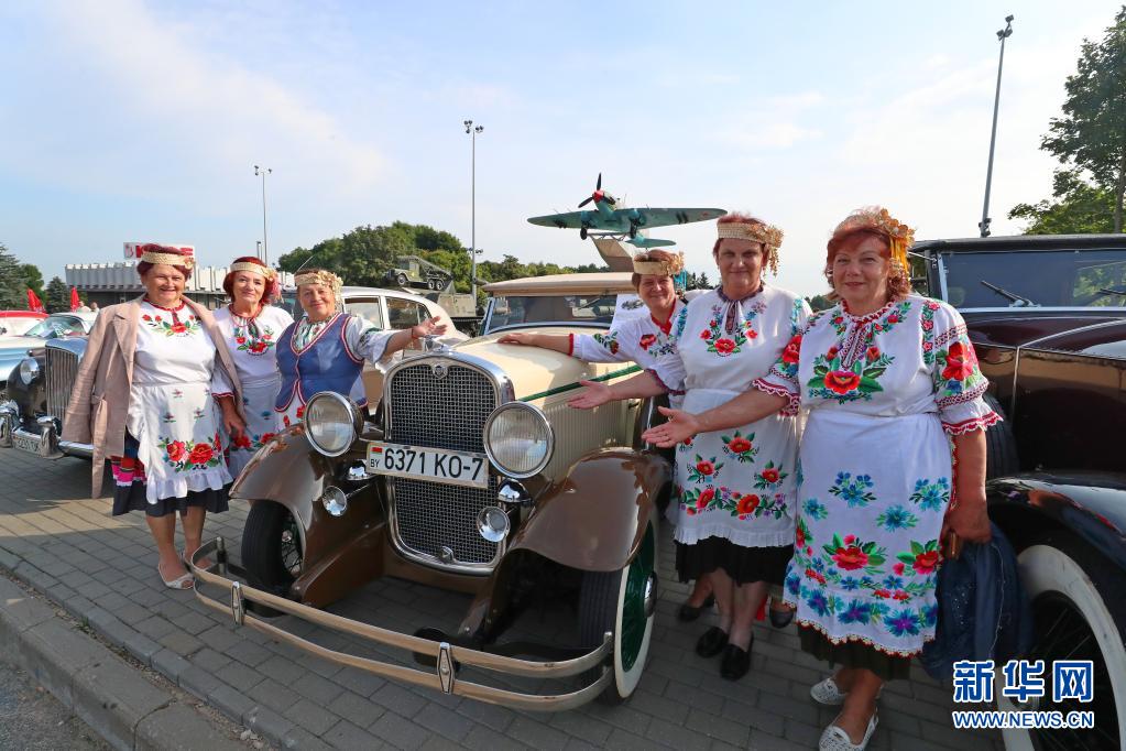 8月14日,白俄羅斯首都明斯克舉辦老爺車展,吸引人們前來觀看。