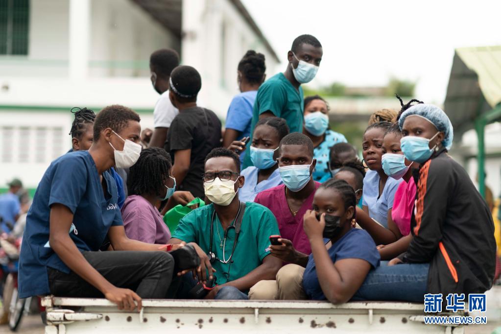 8月17日,人們在海地萊凱乘坐汽車轉移。