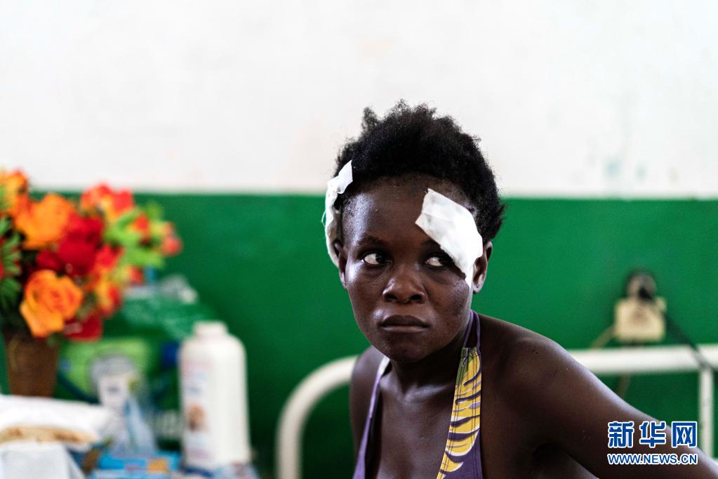 這是8月18日在海地震中附近的萊凱一家醫院拍攝到的傷員。