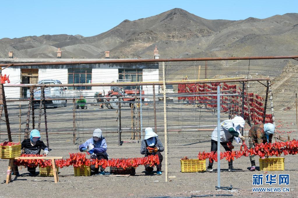 近日,新疆巴里坤哈薩克自治縣三塘湖鎮迎來辣椒豐收季,村民們搶抓晴好天氣采摘、晾曬辣椒。